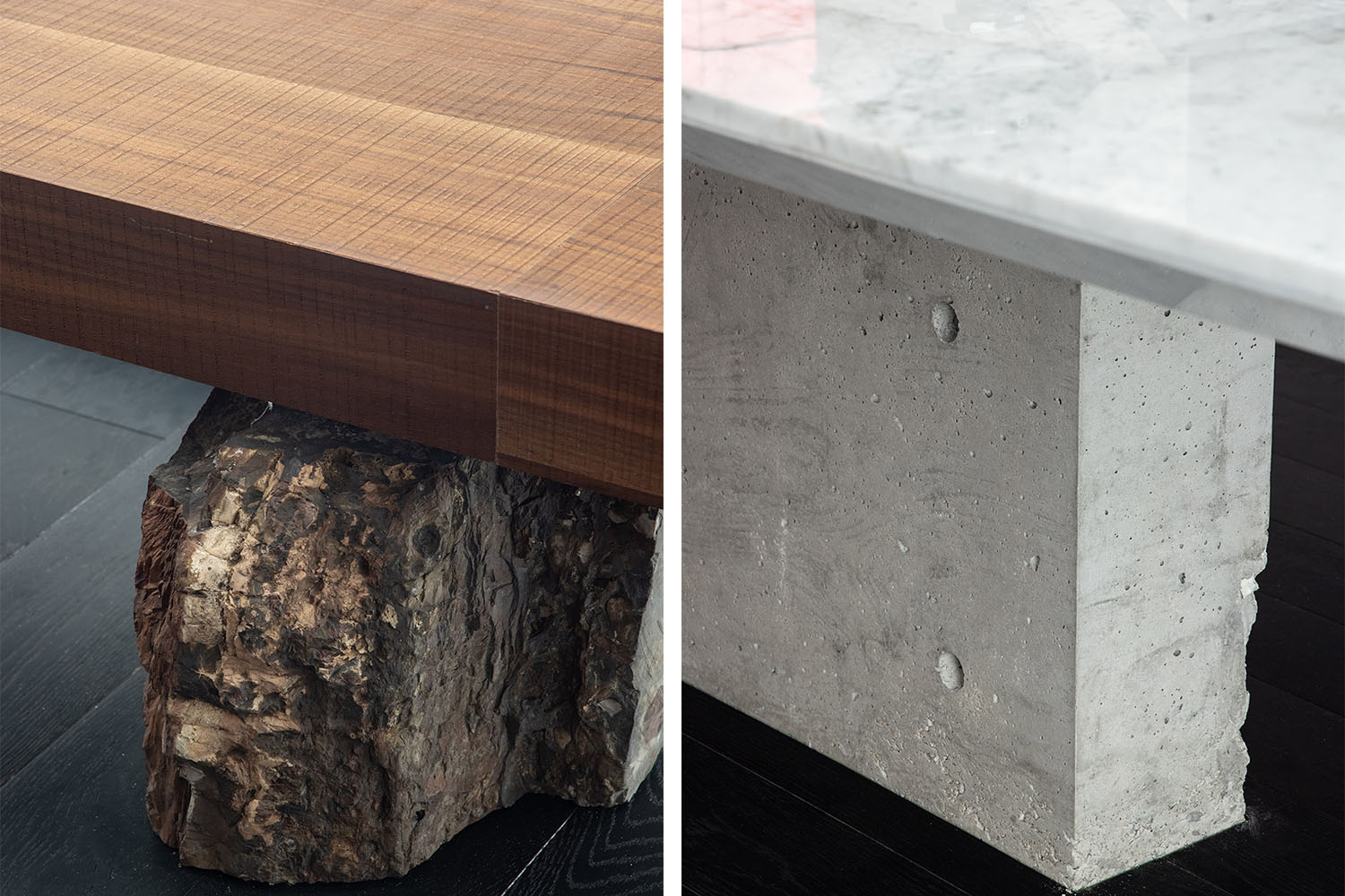 整個(gè)辦公空間的基調(diào)是理性顏色,帶著冷靜的思考,同時(shí)可以迸發(fā)思想性與活躍性,激發(fā)感性的領(lǐng)悟。墻面的清水混凝土、黑色的木地板、天花的金屬板作為空間的主基調(diào),石頭、木飾面、玻璃柜與辦公家具適配空間氛圍,營(yíng)造理性與感性結(jié)合的辦公空間。各種材質(zhì)的互相碰撞,讓空間層次感更加分明。